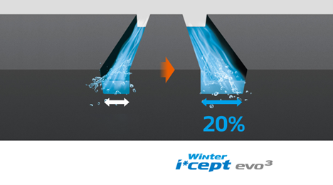 Ширина канавок в плечевых зонах по сравнению с предшествующей моделью winter i* cept evo2 увеличена на 20%, что обеспечивает улучшенный отвод воды из пятна контакта и предотвращает 20% аквапланирование.