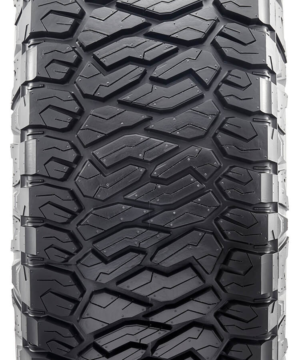 Ее протекторный рисунок характеризуется открытым и ненаправленным дизайном с отдельными блоками. В центре шины блоки расположены в «шахматном» порядке, что увеличивает площадь контакта с дорогой, уменьшая при этом сопротивление качению и износ шины. Кроме того, сложная форма блоков создает большое количество режущих кромок в разных направлениях. Плечевые зоны шины состоят из массивных блоков с удлиненными поперечными гранями, обеспечивая отличное сцепление на бездорожье.