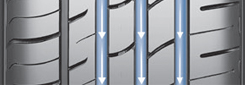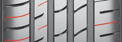 Сбалансированная конфигурация внешней / внутренней дорожек протектора – устойчивость при движении по прямой на высоких скоростях |